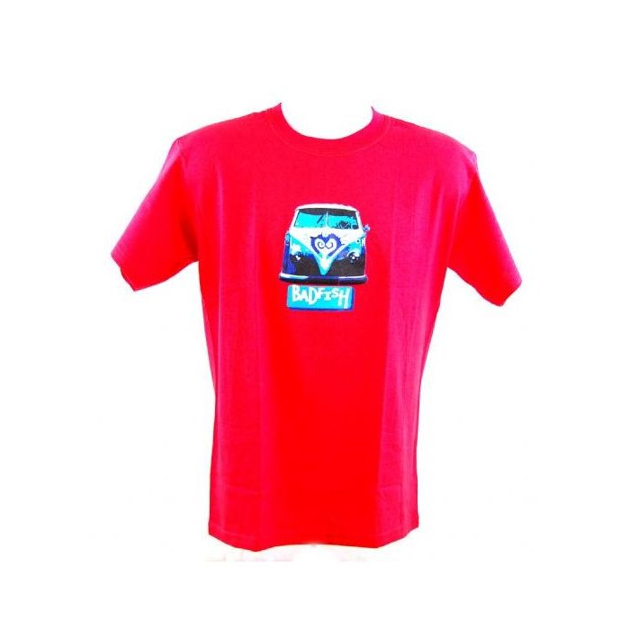 Badfish Red Graffiti Split T Shirt. Size Medium