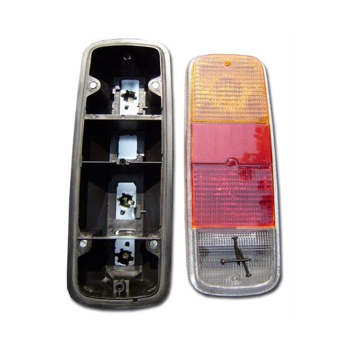 Complete rear light unit with amber red and white lens Bus