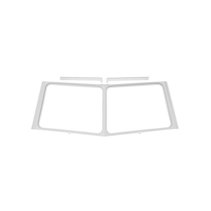 Complete front window screen surround includes details for wiper spindles and all returned edges.