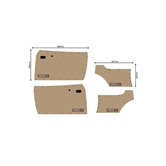 All of our door cards and kick panels are made using Oil Tempered Hardboard just like the original VW panels.
