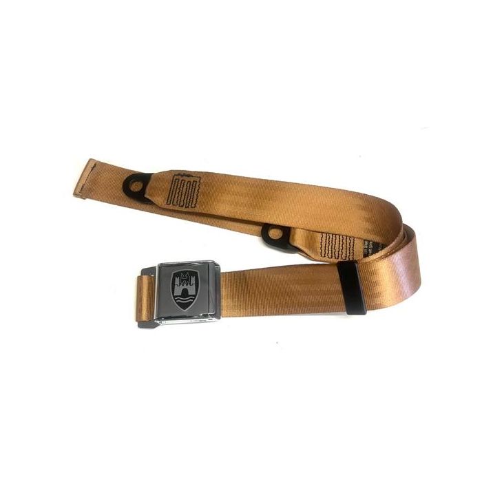 Seatbelt 2 point with chrome buckle and tan webbing