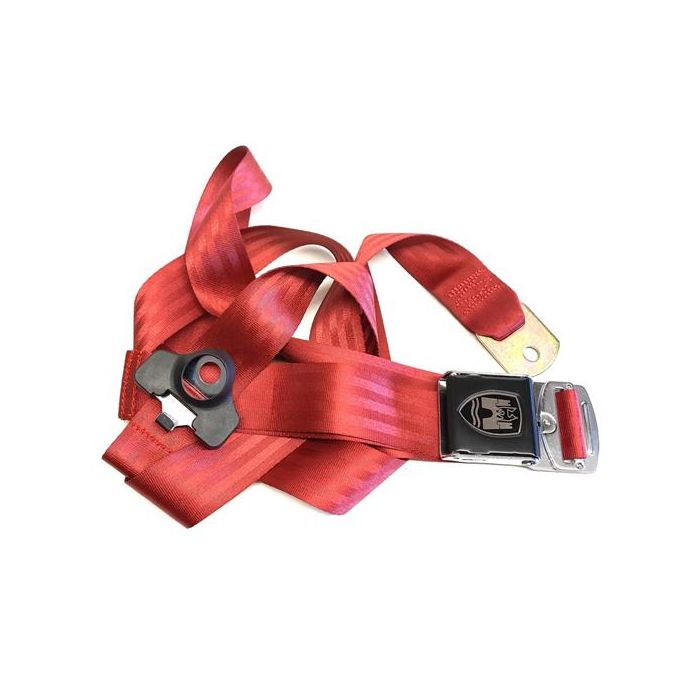 Seatbelt 3 point with chrome & black buckle and Wolfsburg crest Red
