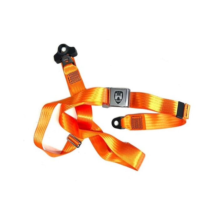 Seatbelt 3 point with chrome buckle and orange webbing