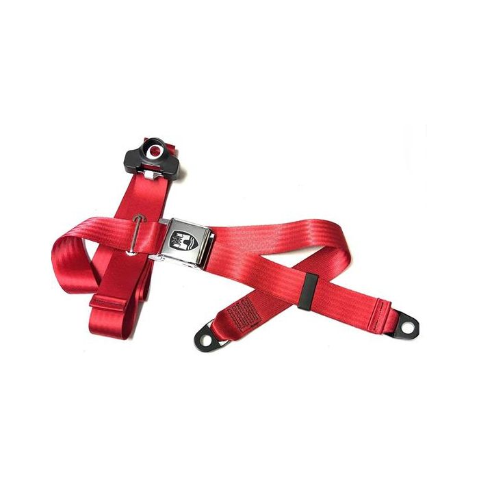Seatbelt 3 point with chrome buckle and red webbing