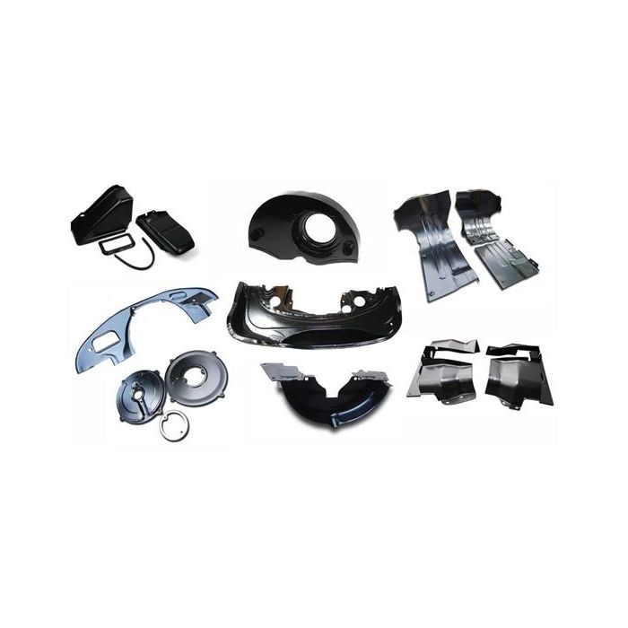 Aftermarket 14 piece tinware kit in black for use with twinport dog house engines running heat exchangers. Late T2 bus will require original front and rear tinware